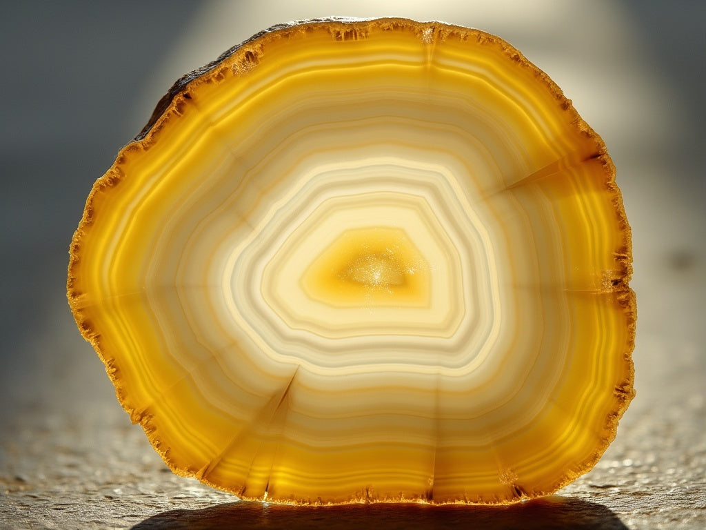 Reconnaissable à ses bandes concentriques ou à ses motifs doux, l'agate jaune offre ancrage et stabilité. Elle peut soulager les problèmes digestifs, stimuler la régénération cellulaire et apaiser l'anxiété et le stress.