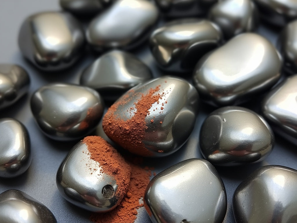 Bien que d'apparence métallique grise ou noire, l'hématite révèle une trace rouge sang lorsqu'elle est réduite en poudre (d'où son nom, du grec "haima" signifiant sang). C'est une pierre d'ancrage extrêmement puissante, qui harmonise le mental, le corps et l'esprit. Elle dissipe la négativité, renforce la volonté et la confiance en soi. Elle est réputée pour améliorer la concentration et la mémoire.