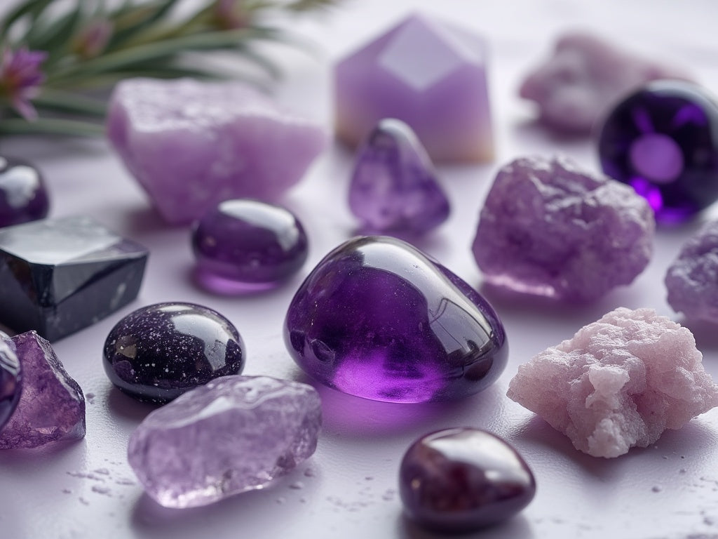 Améthyste, Charoite, Fluorite Violette, Lépidolite, Tanzanite, Sugilite, Iolite, Kunzite, Saphir Violet, Jade Lavande