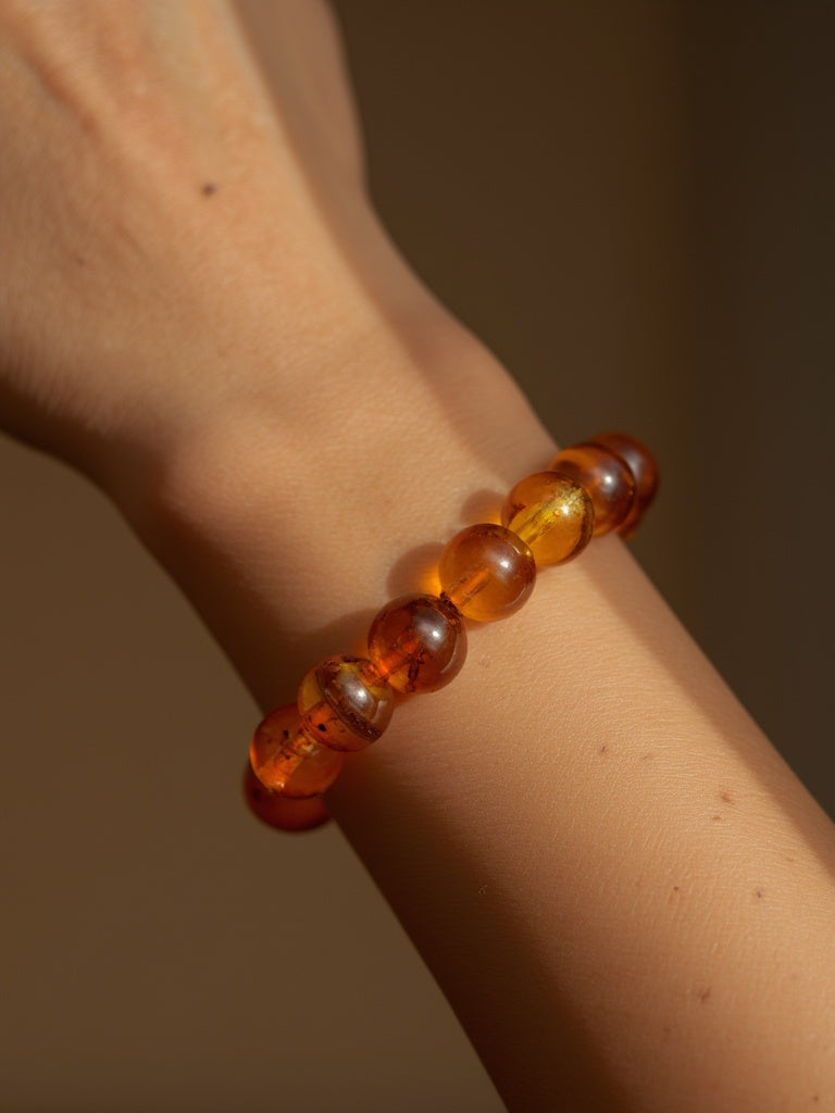 Depuis l'Antiquité, l'ambre est considéré comme une pierre de vitalité, de protection et même un talisman porte-bonheur. Les Grecs l'appelaient "electron" en raison de sa capacité à générer de l'électricité statique lorsqu'on le frotte, et les Romains l'importaient pour des objets d'art et des amulettes. Les civilisations anciennes l'utilisaient pour ses propriétés énergétiques et sa capacité supposée à renforcer le système immunitaire. Aujourd'hui, il est particulièrement apprécié en lithothérapie pour ses nombreuses vertus et son aspect chaleureux.