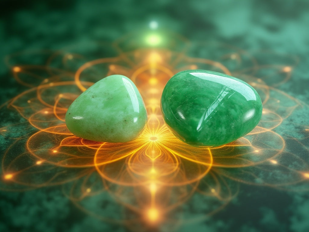 Bien qu'elles partagent une couleur verte, ce sont des pierres différentes. La Chrysoprase est une calcédoine (variété de quartz microcristallin), souvent plus translucide et d'un vert pomme plus vif que le Jade (Néphrite ou Jadéite) ou l'Aventurine (quartz avec inclusions de Fuchsite). Énergétiquement, la Chrysoprase est très axée sur le cœur, le pardon et le calme mental.