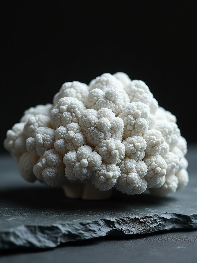 - Apparence : La Howlite présente typiquement des veines grises ou noires très marquées, formant des motifs de toile d'araignée. La Magnésite est souvent plus uniformément blanche ou a des inclusions plus diffuses et une texture poreuse, parfois décrite comme 'cérébrale'.
