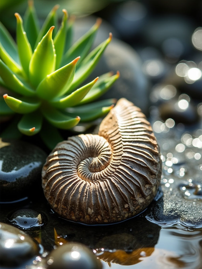 Ammonite (évolution), Jaspe Rouge (ancrage), Oeil de Tigre (protection), Shungite (purification)