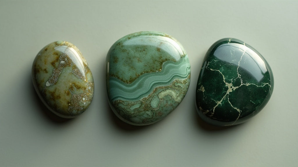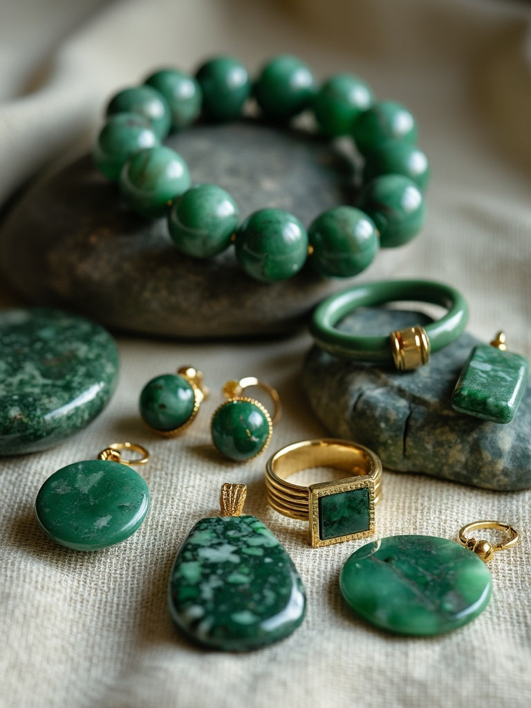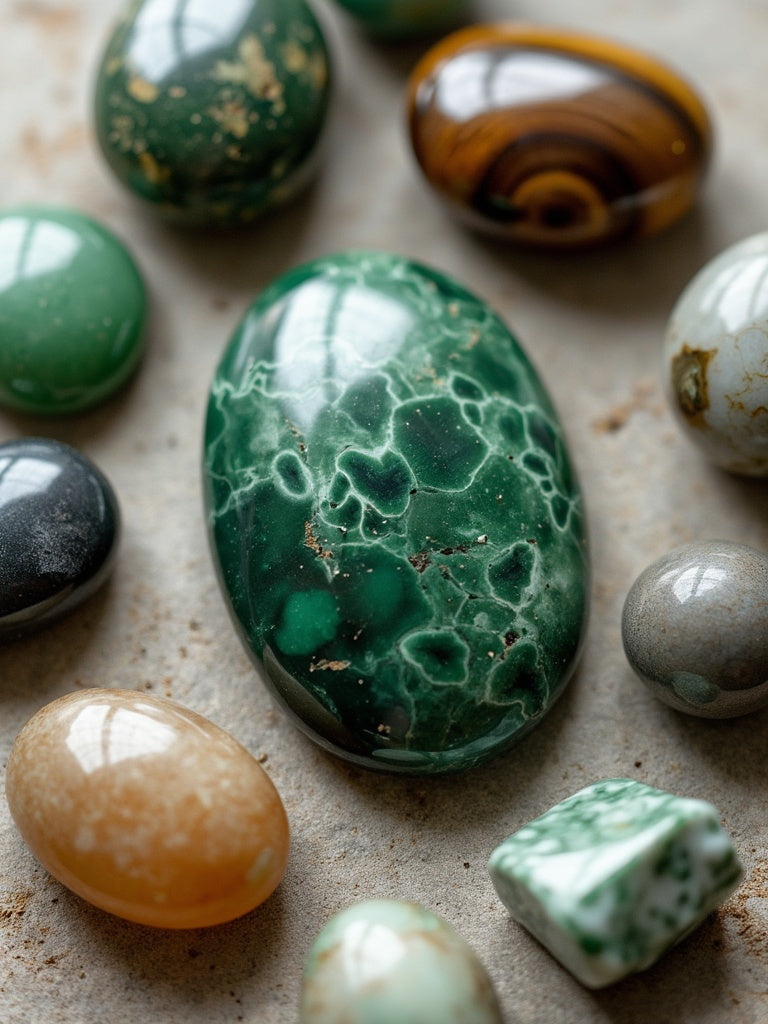 Malachite, Aventurine, Jade, Chrysoprase, Tourmaline noire